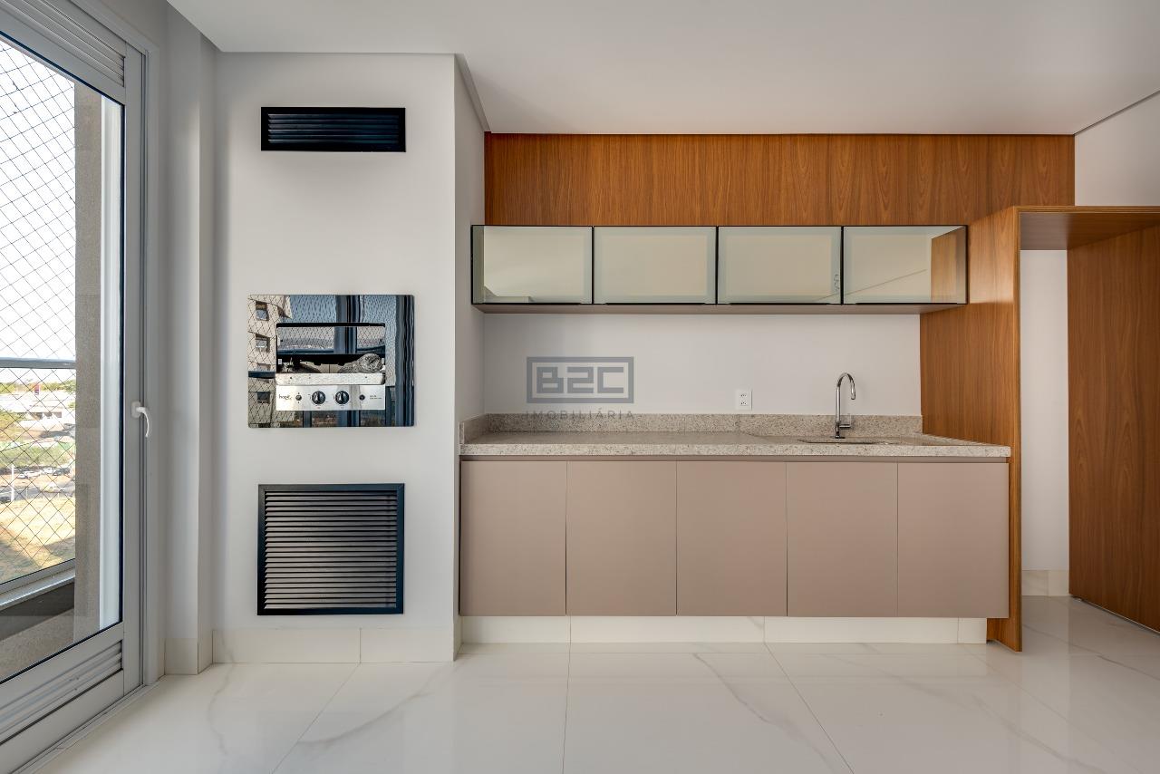 Ampla sala integrada com Varanda Gourmet com churrasqueira em um vista panorâmica do Jardim Goiás e Região, com todas as unidades voltadaa para o Sol da manhã (Nascente)