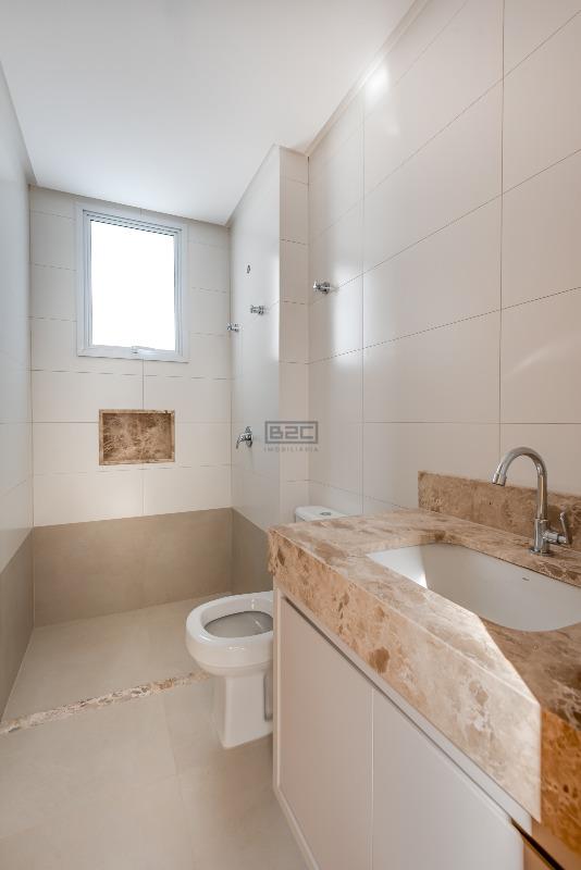 • Mármore Bege Bahia nas bancadas dos banheiros